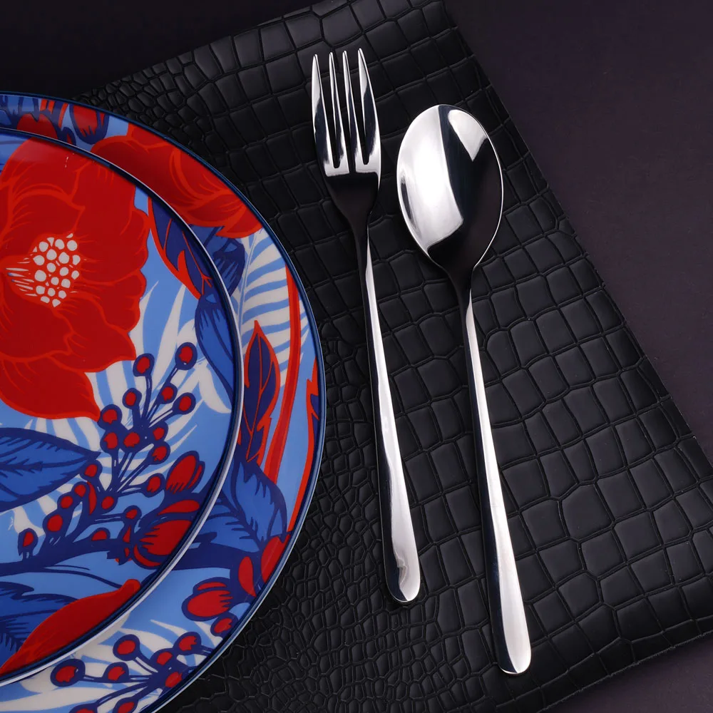 سرویس ۸۶ پارچه مشتمل بر: ۱۲ عدد قاشق غذاخوری – ۱۲ عدد چنگال غذاخوری – ۱۲ عدد کارد غذاخوری – ۱۲ عدد قاشق چایخوری – ۱۲ عدد چنگال میوهخوری – ۱۲ عدد قاشق مربا خوری -۲ عدد کفگیر -۲ عدد چنگال گوشت -۲ عدد قاشق خورشت – ۱ عدد ملاقه گوشت – ۱ عدد قاشق سرو سالاد – ۱ عدد چنگال سرو سالاد – ۱ عدد کاردک سرو کیک – ۱ عدد انبر شیرینی – ۱ عدد قاشق شکر – ۱ عدد قاشق سوپخوری – ۱ عدد ملاقه سوپ