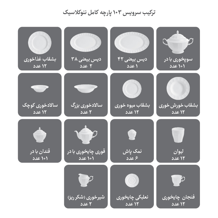 سرویس چینی زرین 103 پارچه نارسیس پلاتینی