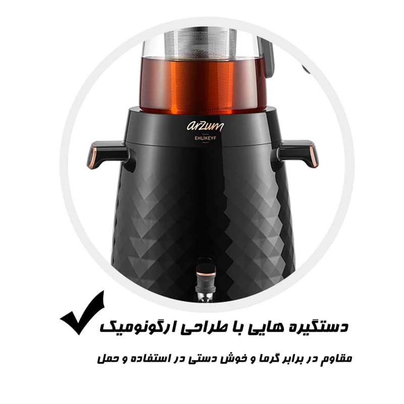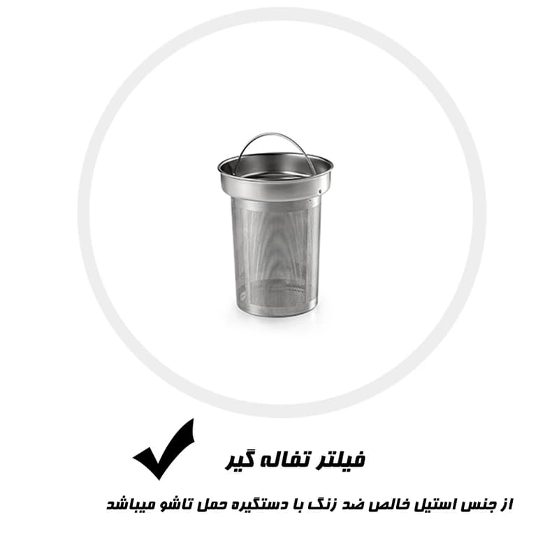 جنس قوری: شیشهای پیرکس با فیلتر استیل ضدزنگ