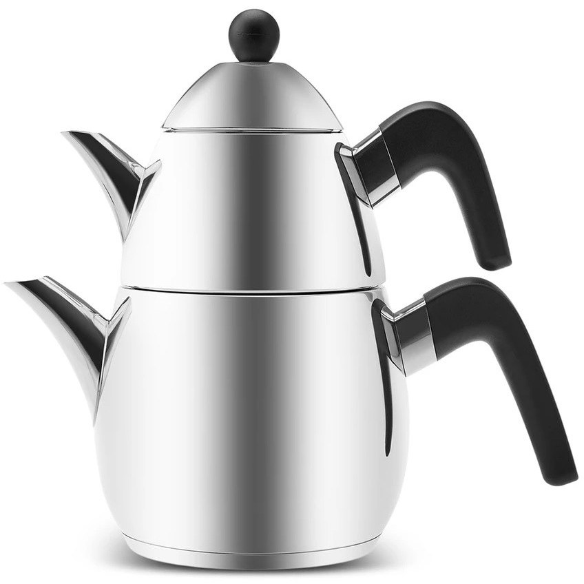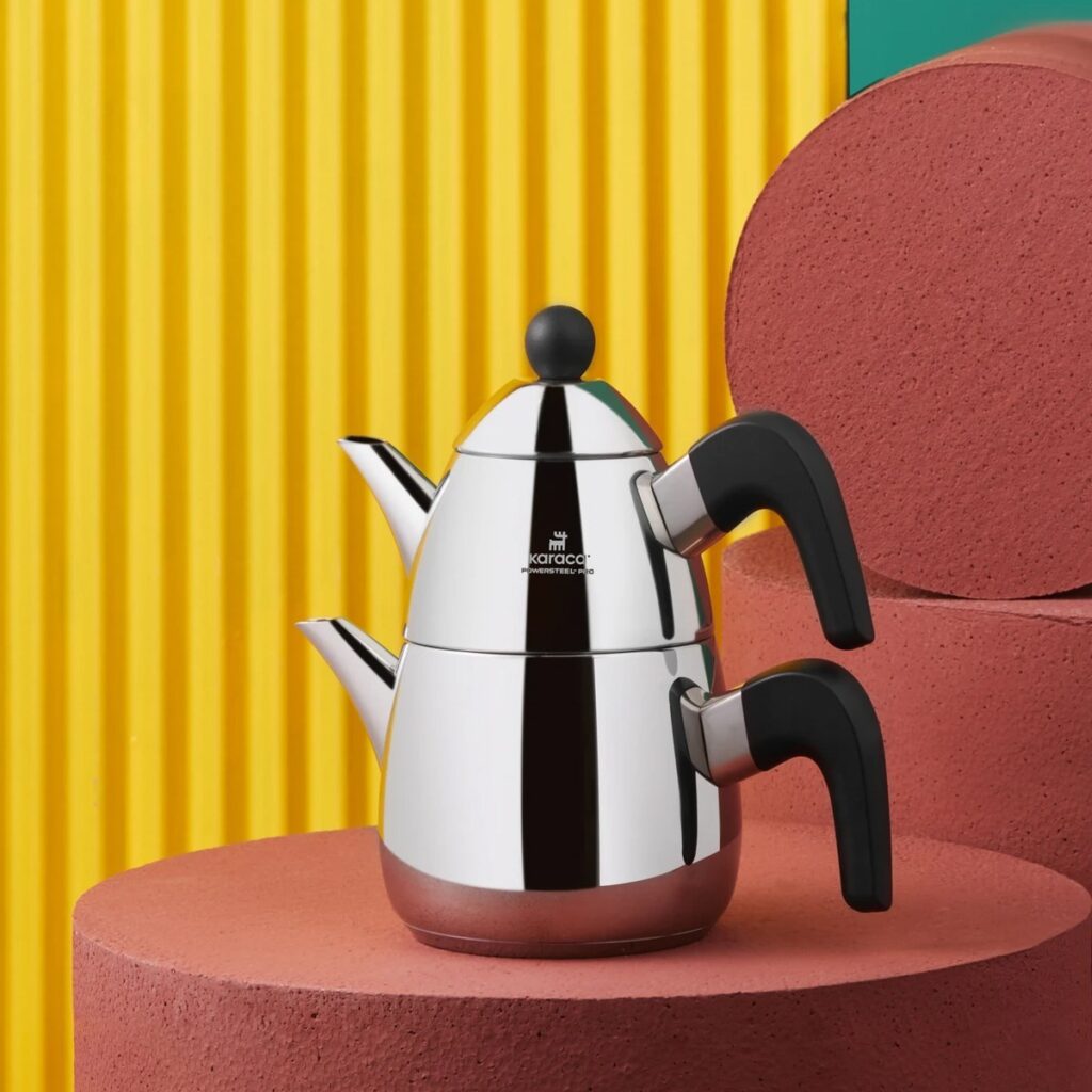 کتری و قوری استیل مات+ چینی کرکماز مدل تامبیک